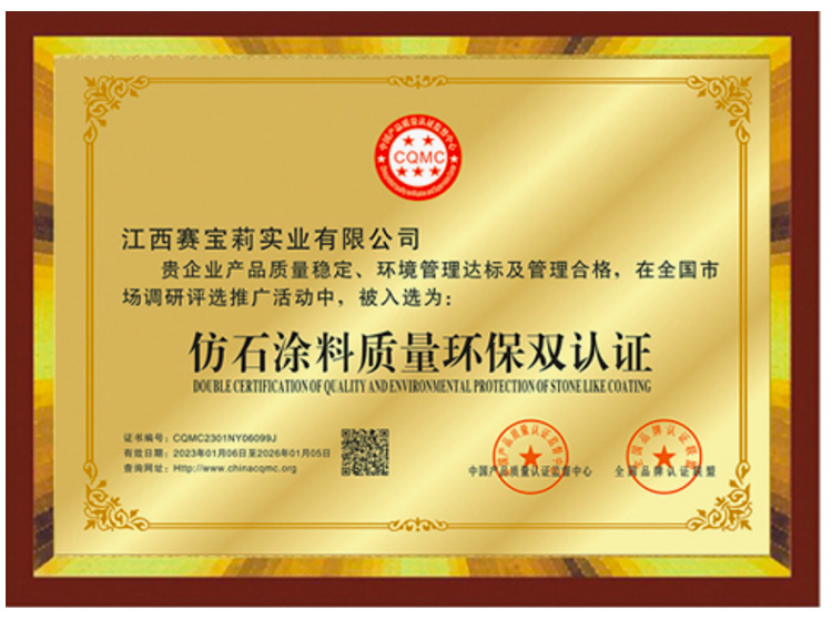 江西賽寶莉實業有限公司總部坐落于英雄城南昌,是一家集建筑涂料研發(fā)、生產、銷售、服務于一體的大型綜合性企業。專注涂料行業20余年,是專業的仿石涂料和藝術涂料制造商和供應商,擁有獨立研發(fā)實驗室,是CCTV央視廣告播出品牌、“國家高新技術企業”“中國建筑材料流通協會理事單位”。選擇賽寶莉,讓家更美麗。